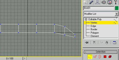 (7)在命令面板上列表的次物体层级中再次单击VERTEX按钮进入点的次物体级别中,对点进行调整,调整后的形状如图8所示。