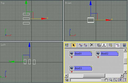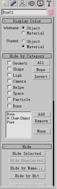 Hide by Hit(单击隐藏):单击此按钮后打开单击隐藏模式,这时在视图中点取想要隐藏的物体就可以将其隐藏。