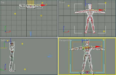 (6)Grid(栅格视图):它是一种辅助操作视图,以栅格辅助物体作为平面,从而产生新的正视图。在操作时通常需要先创建Grid栅格辅助物体,然后在其上按下鼠标右键,点取(Activate Grid)激活栅格命令,这样就在空间中产生了两个正交空间平面。