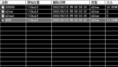 回收站是大家所熟悉的,它的功能和Windows的系统回收站很相似。在PhotoFarmily中删除的图片都放到这里,要将不要的图片全都删除,只需右击回收站图标,选择“清空回收站”。单击回收站图标缩略图窗口将出现列表模式,回收站里的所有内容在缩略图窗口里以列表模式列出(如图5)。