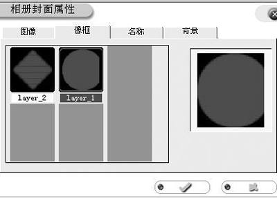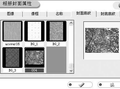 (2)点选“封面”选项卡,切换到封面设置对话框(如图8),在这里有“封面图像”、“封面像框”、“相册名称”和“封面背景”供读者设置修改。