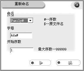 (3)在“命名”下拉框里有三个选项分别是:“Family#”、“#”和“$#”。“#”代表序数,例如数字1、2、3等;“$”代表原文件名,即是图片原来的名字。
