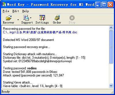 如果要解密Word文件,我们可以使用Word Key解密工具。你可以到http://www.lostpassword.com/word.htm下载该软件。