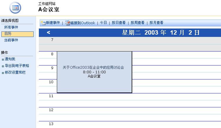 假定,公司行政部张小姐是负责公司的会议室及投影仪的管理,她听说SPS有会议工作区的功能,觉得非常好。但是她提出来管理公司会议室的工作目前非常麻烦。如技术部彭先生想要在星期三下午预定订会订室用于部门会议,会先打电话给张小姐问星期三下午会议室是否有空,如果有空他就先预定。张小姐先查星期三下午有没有空,如果有空就先给彭先生预定。如果没空会告诉彭先生什么时候有空,但是彭先生部门的同事在会议室有空的时候不一定有空,这样彭先生需要同张小姐商量其他时间。也就是要双方相互将就时间。以前彭先生预定会议室可以要来来回回好几次才能将会议室预定下来。基于这种情况,电脑部陈先生利用SPS的事件功能为张小姐在SPS中创建了会议室管理功能。