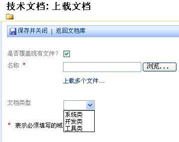 单击“确定”,系统已经创建好新栏,在下一次在此文档库中上载或新建文档时就可以选择文档类型了。如图9所示。