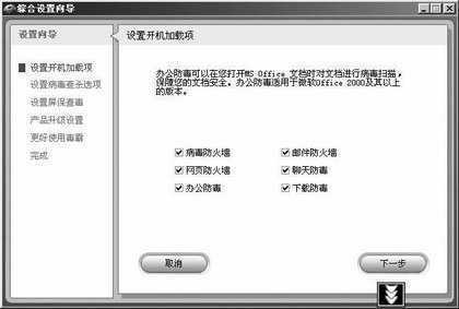 由于目前各个杀毒软件都含有网页、邮件、病毒等多个防火墙和大量选项,这给不熟悉的用户设置带来了一些困难。不当的设置和选项的漏设都给安全带来一些隐患。此次《金山毒霸6》中加入了“设置向导”,而且每一步上面都有详细说明,把鼠标指针移到选项时还会显示出每项的说明(图1)。