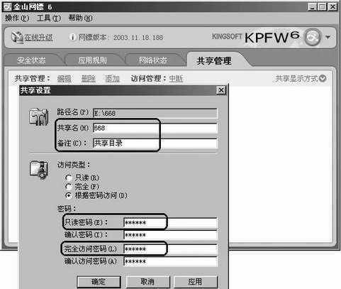 在局域网中,为了实现某些资源的共享,往往设置一个共享目录,用户可以通过“网上邻居”实现互相访问。《金山网镖6》中新增加的局域网共享目录访问监控,允许用户动态查看本机共享目录的访问情况,及时中断不必要或非法的共享目录(图4)。