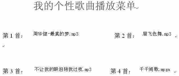 平时我们见到的歌曲菜单一般都是类似酒店菜谱的菜单,今天笔者给大家带来的却是另类的歌曲菜单──通过Word 2003打造的可直接双击播放的歌曲菜单。