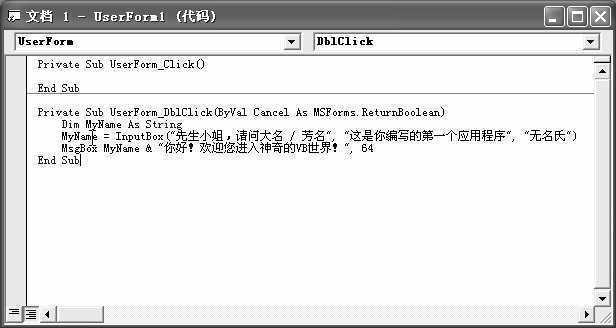 MyName = InputBox ("先生小姐,请问大名/芳名","这是你编写的第一个应用程序","无名氏")