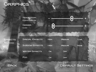 现在回到我们的游戏领域,进行游戏实战优化设置。这次我们来看看被很多用户称为拥有最美丽的游戏画面的《波斯王子:时之沙》的显示设定。这是一个比较典型的分了两个级别的显示设定。第一级别以比较通俗易懂的设置名称(虽然可能不那么精确)来描述画面效果。Special Effects(特殊效果),这是极笼统的一个描述,可往往就是这类设定包含了大量特效的有无,在我们的测试中,分别设置为高级和中级的特殊效果,游戏速度可以相差20帧;而设定在低特殊效果时完全就丧失了《波斯王子:时之沙》画面特色,你再也看不到那种影随风动的游戏效果。所以我们推荐特殊效果最低开到中级,除非是一款极低档的显卡只为了能运行游戏,那也只有“低”这一个选择了。Shadow Effects(影子效果),对游戏速度影响不大,对Radeon 9200及其以上显卡,推荐开到高级。Water Effects(水面效果),对游戏速度影响也不大,对所有显卡都推荐打开。Fog(雾效),这是波斯王子画面的一个特色,对游戏速度影响也不大,推荐所有显卡将该功能打开。