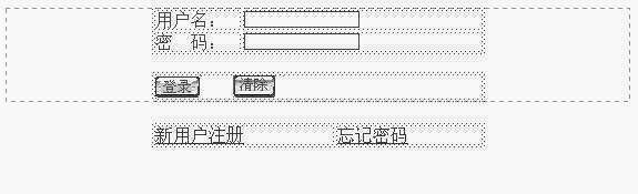 在表单下方输入“新用户注册”、“忘记密码”,并将超链接分别指向register.asp、lostpwd.asp。
