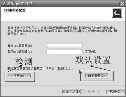 1.添加DNS服务器的地址。点击“检测”按钮可获得当前DNS服务器的地址;点击“默认设置”按钮,软件会选择默认的DNS服务器的地址(图1)。