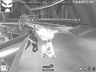 Droid制造间里,源源不断的战斗机器人是Malak阻挡你的最后屏障,依次使用6台电脑终端关闭制造器,或者改写程序使新产生的机器人帮助你作战。最后的决战只需要注意一点,Malak身边围绕着数个盛浸人体的容器,里面的生命体就是他汲取原力的源泉,使用“Destroy Droid”先摧毁这些邪恶的装置,他将被迫与你做最后一搏,否则战斗将演变成一场漫长的拉锯战。
