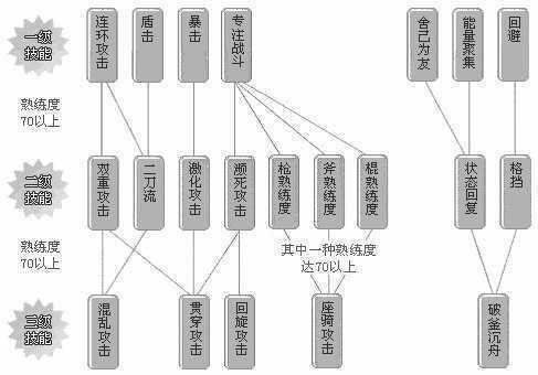 各村落及各族的原始人中,被人为训练或是自己想追求完美体能的人,职责是保护村落的安全,抵抗外敌,或是阻挡因猎食而误闯村庄的各类危险的大型恐龙。他们熟悉各种战斗技巧,担任村内哨兵的工作。当一名称职的白狼勇士除了战斗能力之外,毫不畏怯的胆识和慷慨赴义的决心才是关键。能力值重体、攻、防,可穿戴大部分防高及攻高的装备。白狼勇士技能见图3。