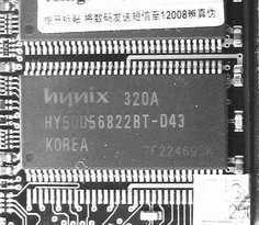 从做工上来看,这款采用HY颗粒的内存条没有任何值得称赞的地方,PCB上的贴片元件被省略得几乎差不多了。标贴上PC3200也被错标为PC400。好在这款内存的超频性能还可以接受,在默认延迟值下可以达到430MHz。不过这样的做工长期使用后很有可能出现不稳定的情况,这也是让人担心的。