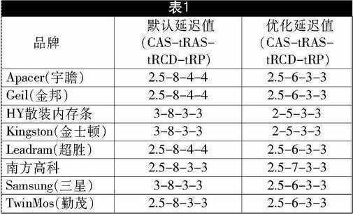 经过试验,我们得到了参加测试的每一款内存所能达到的最低延迟值组合,详见表1。得出在优化值下各内存的成绩后,我们将它与默认值下得到的成绩进行对比。