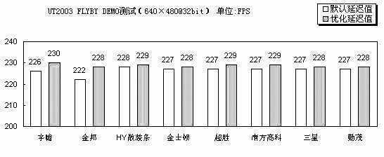 在UT2003测试里,宇瞻DDR400的成绩不错,特别是在优化之后提升的幅度相对明显一点。而金邦DDR400在优化之前的成绩依然排在了后面,优化之后提升到和其他品牌内存同一水平线上。