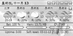 至此,整个修改全部完成,每次同步的时候天气预报会自动更新。细心的读者肯定会发现,修改config.txt和slider.txt文件还可以将电池电量、内存、CF卡的显示也改成中文。