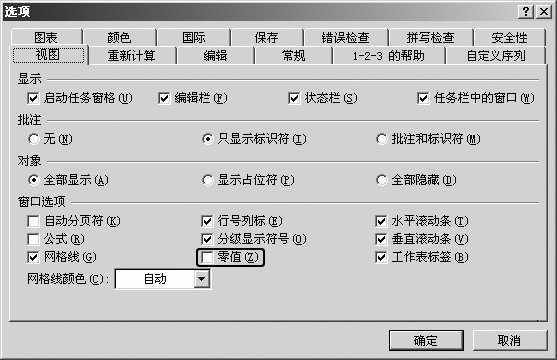 在Excel中,单击“工具→选项”,打开“选项”对话框,在“视图”选项卡中,将“窗口选项”栏中“零值”复选框前的钩取消(图1),这样Excel中所有单元格中的零值就都被隐藏了。