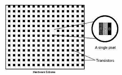 TFT-LCD的每个像素点都是由集成在自身上的TFT来控制的,它们是有源像素点,分辨率正是由这些点形成,如果液晶显示器的分辨率是1024×768像素,那么这个平面就由1024×768个像素组成,便可正确显示画面。(注:每款LCD显示器的像素值都是固定的,这也是为什么液晶显示器只有在显示跟该液晶显示板的分辨率完全一样的画面时才能达到最佳效果的原因)每个像素都配置一个半导体开关器件,利用扫描法来选择任意一个像素的开(亮)与关(暗),这其实是利用薄膜式晶体管的非线性功能来取代不易控制的液晶非线性功能。
