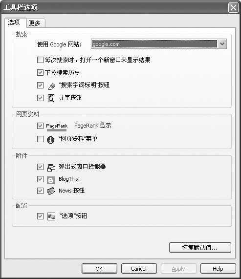 安装完成后,在IE地址栏的下面会自动生成Google Toolbar工具栏,可以先在选项当中对Google Toolbar进行一些基本的设置(见图)。在“弹出式窗口拦截器”前打钩,Google Toolbar就会自动将弹出网页进行屏蔽。如果不想对弹出网页进行屏蔽,单击Google Toolba工具栏上的拦截按钮就可以不进行屏蔽。如果要想显示个别弹出窗口,在单击链接时按Ctrl键即可。这样以后再访问网站的时候,就不会看到弹出广告。如果你不需要Google Toolba,直接在添加或删除里面卸载即可,非常方便。