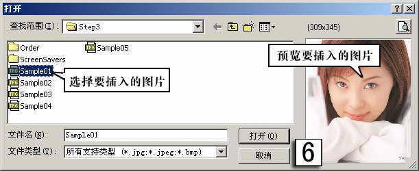 ⑥点击“插入图片”按钮,弹出插入图片对话框,选择合适的图片后点击“打开”。
