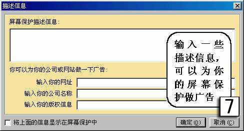 ⑦点击“描述信息”,在弹出的对话框中输入相应的描述信息为你的屏保做广告,完成后点击“确定”。