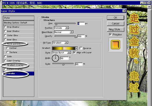 打开Photoshop图层样式控制面板,在图层样式控制面板中现有上百种特效模板,要将这些特效应用到文字上面,在你选择的图层样式面板中,双击鼠标即可实现文字特效(图7)。