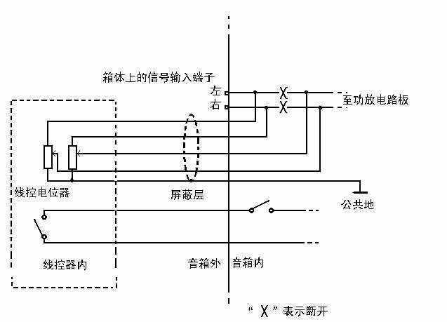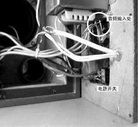 第二步:将音箱内的音频左右声道输入线全部断开(最好的方法是直接将音箱后面板上的音频输入莲花插座上的焊点焊开),再将音箱上的电源开关的两根焊接线也焊开。这样做的目的就是为了将线控的音量控制线和电源控制线串入电路中。音频输入线端子和电源开关的位置如图3所示。