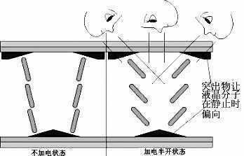 为了液晶显示器有更好的画面,因此制造商们已经花了很多时间来试图改善液晶显示器的视角特性,有数种广视角技术被提出:TN+Film、IPS、MVA等。
