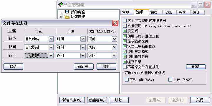 1.在“站点管理器”窗口中依次点击“选项→配置”,在弹出的窗口中选择需要的下载规则(图2)。