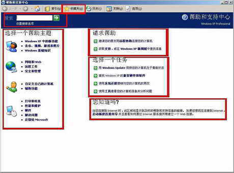 “帮助和支持中心”主要分为四大部分:帮助主题、请求帮助、选择任务和您知道吗。“选择一个帮助主题”栏里主要介绍Win XP的各种操作和注意事项。通过“请求帮助”你可以在遇到问题时向朋友或专家发出求助,让他们和你共同解决问题。“选择一个任务”栏主要介绍各种系统工具的使用方法,十分详细。使用“您知道吗?”栏必须连接Internet,在这里会列出微软发布的一些信息和新技巧。