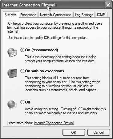 在SP2中一切都不同了,在ICF服务运行之前,系统中新增了一个名为“引导时策略”(boot-time policy)的比较简单的防护,通过这个防护,我们只能使用到少数必需的网络服务。例如DNS服务器和DHCP服务器的联络等,直到ICF服务启动后网络活动才能正常。
