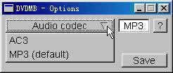 DVDMB是一个非常好用的DVD转换工具,它可以直接从DVD光盘中读取数据来转换成DivX(.avi)或VCD(.mpg)影片,且操作非常简便,安装后运行会打开如下图所示界面,需要设置的有如下几处: