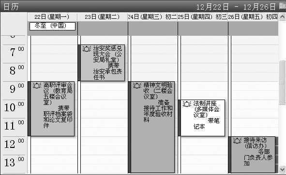 按照上述方法,就可以在12月22日至26日的日历中建立相关会议和活动的日程(图5)了。