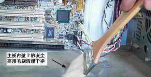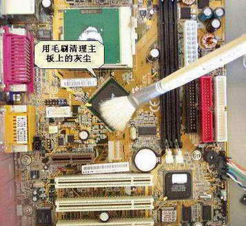 ①清洁主板时首先用毛刷或油画笔对主板的各个部位进行清扫。如果拆下了主板,还要对主板的背面也进行清扫。