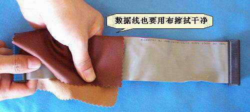 ②随后再用干布擦拭机箱中各个数据线上的灰尘。