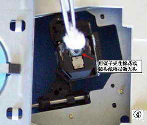④用镊子夹住干燥的棉花或镜头纸轻轻擦拭光驱的激光头。擦拭完成后将光驱装好。