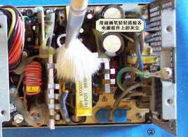 ②用毛刷或油画笔清扫电源电路中各个元件上的灰尘,并用干布擦除散热孔上的灰尘。