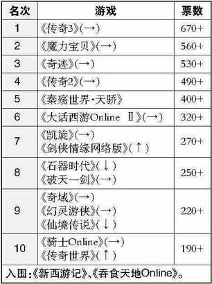 注:《电脑报》游戏广场的网络游戏热门排行榜活动全部根据读者投票的结果,在进行真实有效的统计后公布。网络游戏热门排行榜的结果只代表《电脑报》读者的选择,并不完全代表该网络游戏的真实市场占有率。