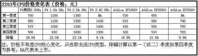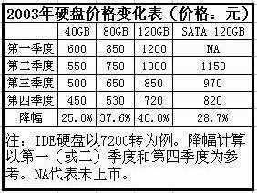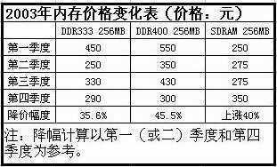 我们可以从CPU、内存、硬盘价格表来了解2003年这三类产品的价格变化。