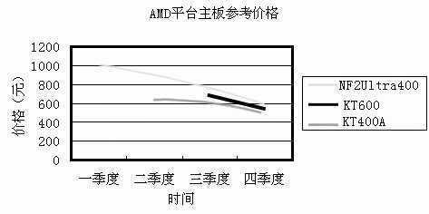 相对Intel平台的Intel一家独大,AMD平台产品倒是百花争鸣。VIA方面,支持DDR400的KT400A价格为400~600元,而KT600的价格则保持在600元的水平上;最新的支持双通道DDR技术的KT880主板,最近终于上市。而在Athlon 64发布后,VIA又推出了对应的K8T800平台,它的上市价格在1200元左右,现在价格已经降到1000元左右。