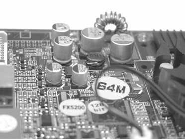 显存方面,Ennyah 魔铠者GeForce FX5200 战列版并不突出,采用的是5ns DDR,刚好符合标准频率400MHz的要求,不过在测试中我们发现,Ennyah 魔铠者GeForce FX5200 战列版显存的超频能力还不错,显存可超到520MHz稳定运行,这应该完全归功于魔铠者FX5200设计和做工都不错的供电电路。