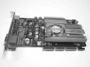XFX GeForce FX5200独特的X形包装盒特别醒目。XFX GeForce FX5200也采用了P162的公版设计,供电部分采用名牌电容,供电充足,因此3.6ns的显存频率可以从默认的500MHz超到610MHz,这已经超过了3.6ns标准的550MHz不少,可见XFX GeForce FX5200的超频性能很好。不过超频后的性能提升相对其他产品较小,我们推测可能是显卡的BIOS中对显存的延迟参数设置得相对保守一点。不过这么好的超频性能完全可以弥补这一点不足了。另外,XFX GeForce FX5200的风扇做得非常精致、美观,鳍片比较多,散热面积比较大,效果当然不错。当然,你需要购买一个透明机箱,才能在使用的时候欣赏这个漂亮的风扇:)。