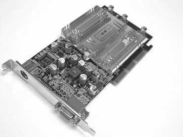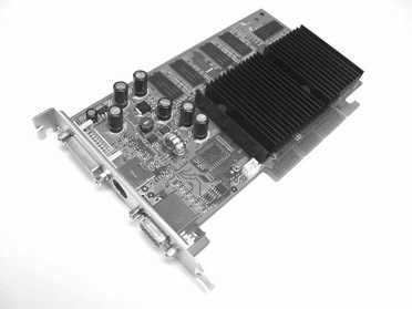 超大散热片,被动式散热,消除了工作时显卡产生的噪音,大量使用了铝壳电容,省略了DVI接口。