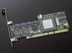 另外,在建立RAID的时候还需要配备一块SCSI RAID控制卡(图2)。少数低端服务器为了降低成本,都在主板上集成了SCSI RAID控制芯片。这种集成的RAID芯片不仅功能少,而且如果发生断电,RAID信息有可能丢失,从安全性考虑,最好还是单独配备SCSI RAID控制卡。SCSI RAID卡在功能上比集成的RAID芯片强很多,不仅可以实现服务器本地硬盘建立RAID,而且还可以外接磁盘阵列柜,实现大数据量的存储。在SCSI RAID卡上还配有充电电池,如果发生断电的情况,可以保证数天内RAID信息不丢失。在选择SCSI RAID控制卡的时候,还要注意的就是通道,单通道的SCSI RAID控制卡只能建立一个RAID,如果要建立RAID 0+1的话,应该选择双通道SCSI RAID控制卡。另外,在一块SCSI RAID控制卡上会有内部和外部两种接口,这样一块双通道的SCSI RAID控制卡等于有4个接口,但这并不代表它就可以建立4个RAID。当你既需要建立本地硬盘RAID又要连接磁盘阵列柜的时候就要注意了,内外接口是相互对应的,这时本地RAID使用了SCSI RAID控制卡内部的接口1,那么外部的接口1就不能再使用。如果你还需要的话,可以购买4通道的SCSI RAID控制卡。