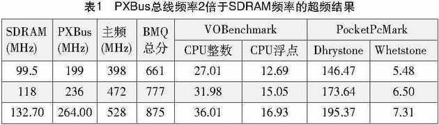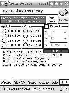 使用Pocket Hack Master提供的40种频率组合超频,这时PXBus总线频率等于SDRAM频率。