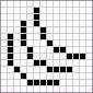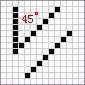 5.下面开始修线的步骤。这个时候必须注意像素点的合理排列(图8)。上面的线条错误,下面的正确。要让众多的像素点连接流畅有规律,否则直接影响像素图缩小后观看边缘的精度。