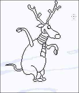 4.点菜单“窗口→路径”打开路径面板,选中小鹿所在的层,然后点击面板下方的第二个按钮“路径描边” ,使用笔刷对路径进行描边。由于我们前面已经设置画笔的模式为铅笔,这样就获得了一个像素宽度的边!继续绘制完成其他所有的轮廓。