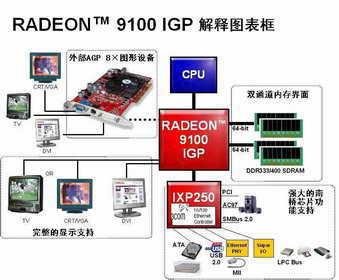 Radeon(镭)这块金字招牌已经被ATi成功地使用了很长时间。自ATi与NVIDIA的竞争正式开始时,也就是3D显卡性能之争开始时,Radeon就已被作为了ATi显卡的代名词。在习惯了将显卡称为镭的时候,Radeon 9100 IGP又冷不丁地突然出现了。
